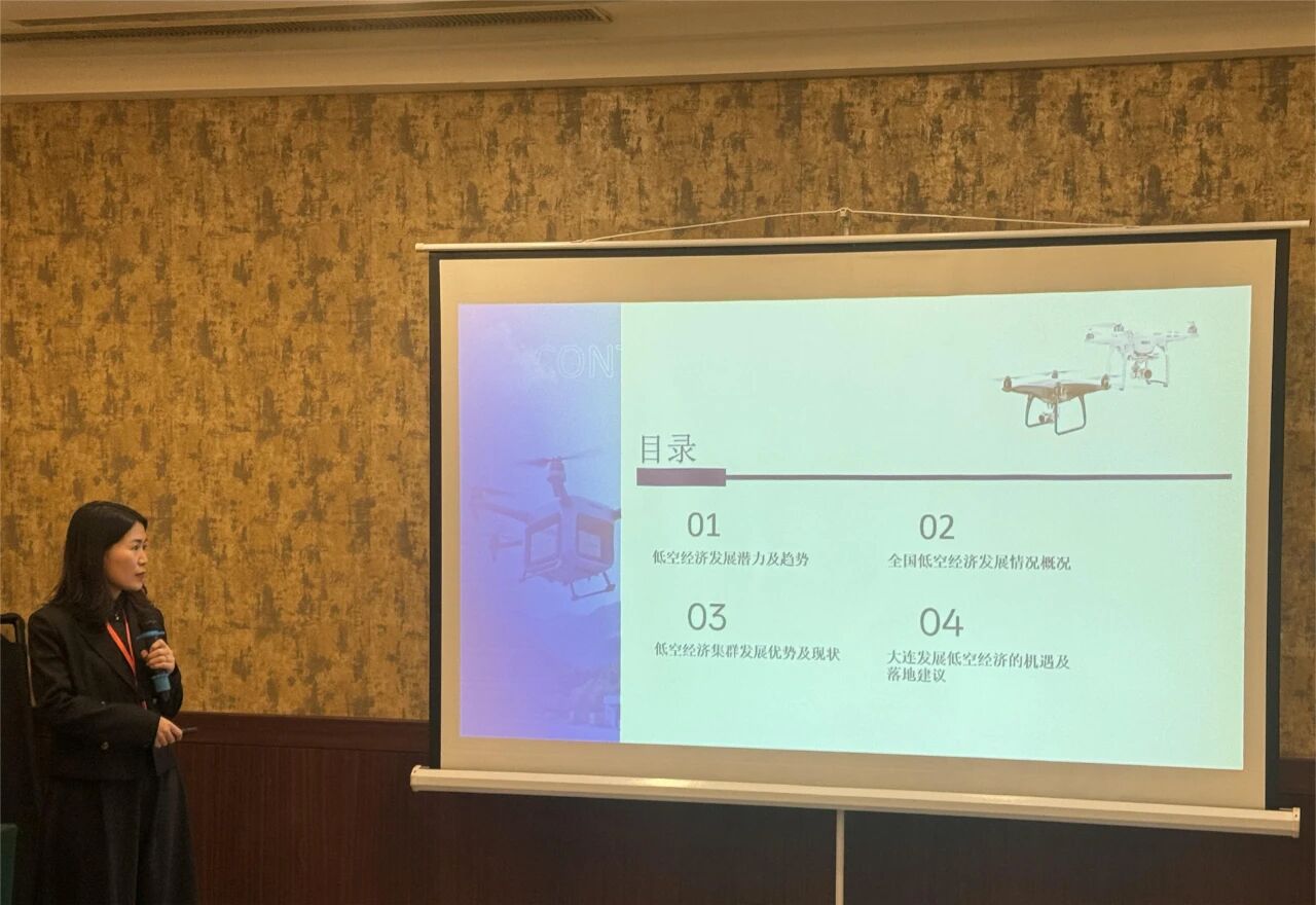 王洋在演讲中指出,我国在无人机产业链领域已形成全球领先优势,产业体系完备、政策支持密集,为低空经济的快速崛起奠定了坚实基础。虽然当前行业仍面临技术成熟度、基础设施建设及管理体系等多方面挑战,但随着产业链协同与区域集聚趋势的增强,低空经济正迎来体系化发展的关键阶段。当前,广东、江苏、浙江、北京、四川低空经济发展指数位居全国第一梯队,各地正结合自身资源禀赋与产业基础,从基础设施建设、政策扶持到应用场景拓展多点发力。王洋从成都、沈阳、哈尔滨等地的产业集群示范实践出发,剖析了各地在空域管理、基础设施与应用场景方面的差异化布局。她指出,这些地区在国有资本与社会资本的协同助力下,立足于自身禀赋,形成了具有当地特色的低空经济产业集群,推动低空经济实现从试点探索向规模化发展的跃升,为大连未来的产业布局提供了有益借鉴。